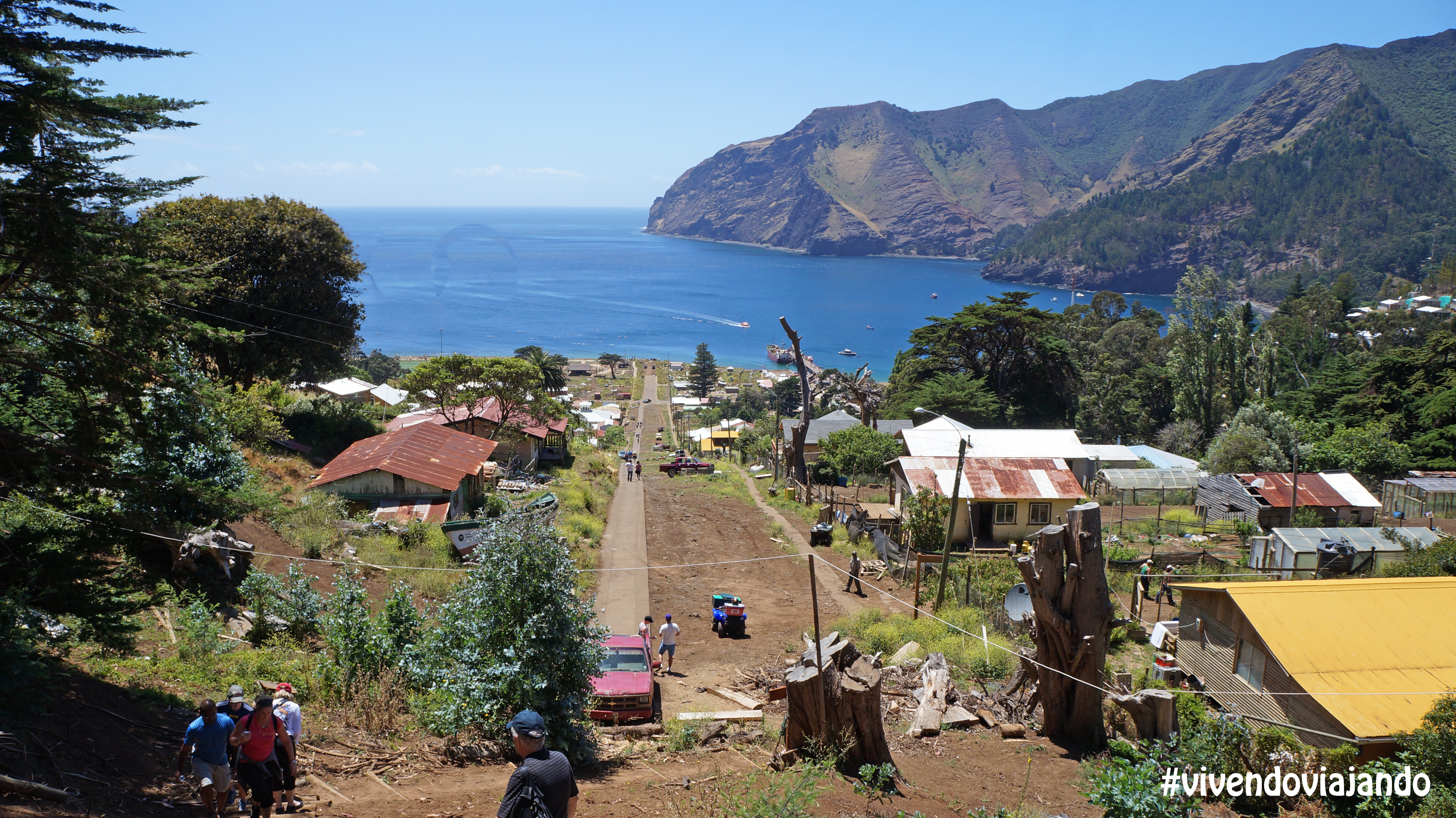 Já na metade do percurso consegui ter uma visão deslumbrante da baía da Ilha de Robinson Crusoé. E logo no fim do percurso pavimentado já consigo chegar à entrada do Parque Nacional Juan Fernandez. Um muito bonito e arborizado. As trilhas são de fácil acesso e é muito comum encontrar até idosos seguindo pelo percurso.